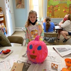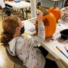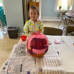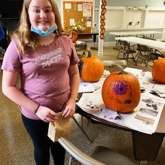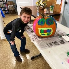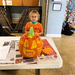 Pumpkin Painting Party – On Saturday, Oct. 19, a community pumpkin painting party was held. We had to be inside because of bad weather, but had plenty of room to space out each family at their own table. Everyone had a great time painting, and then doing other Halloween activities, including making snack bags filled with treats. You can see some of the fancy pumpkins and their artists in the pictures below. Sheryl Duncan-Wicks and Cheryl Valvano organized the Christian Education sponsored party, assisted by Deb Janes, Donna Crawford and Carol Turkett. Thank you to all for making this happen!