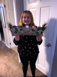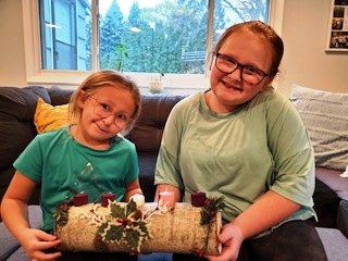 Our first special activity was decorating Advent logs. Many remember this activity from the past, so we decided to try it again. Many thanks to Kevin Mead for providing us with a birch tree, and to him and Steve Valvano for spending a cold muddy few hours chopping it down! Next we want to give special thanks to Dick Frew for cutting the pieces neatly and drilling holes for the candles. Check out the photos of a few finished logs.