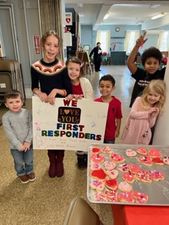 For Valentine’s Day, the kids and some adults had fun decorating valentine cookies and a card for Churchville’s first responders.